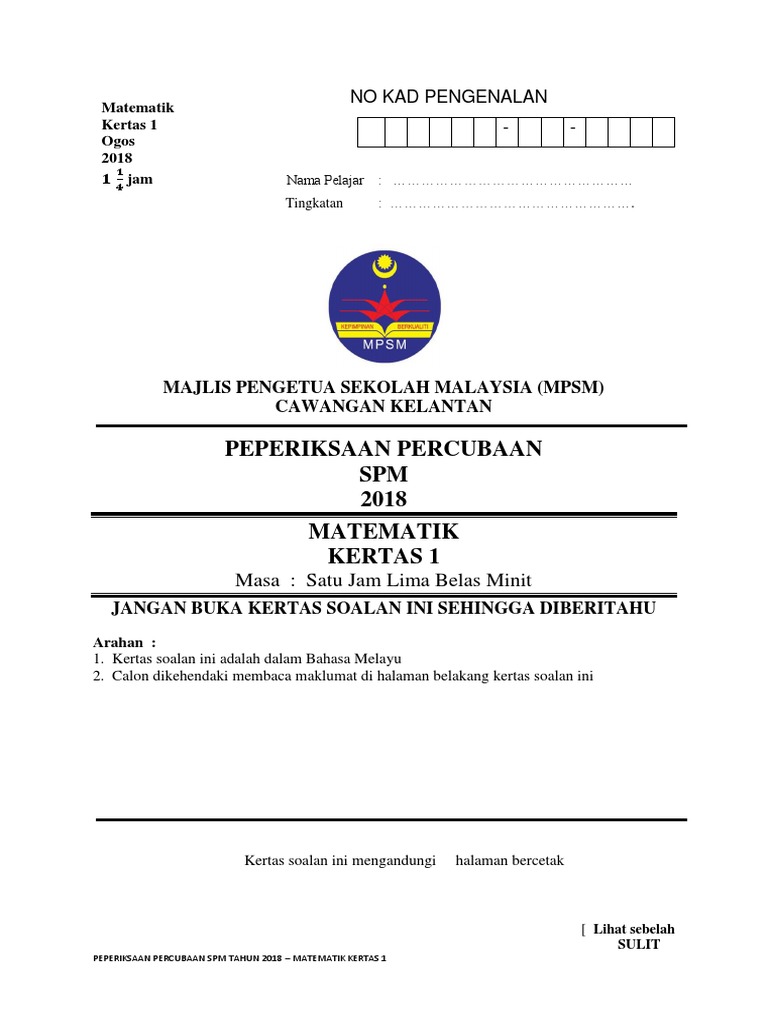 Soalan Spm 2018 Matematik - Q1 q10 spm jun 2018 matematik kertas 1 jawapan part 1 klik time di bawah untuk skip ke soalan tertentu 0:00:24 q1 nombor.. Soalan peperiksaan percubaan spm 2018 (trial spm 2018). Ini kerana soalan spm tahun semasa akan diambil dari soalan spm 5 tahun ke belakang. Soalan dalam bahasa inggeris mendahului soalan yang sepadan dalam bahasa melayu. Modul soalan program bimbingan peperiksaan spm 2018 + skema jawapan (untuk 28 subjek spm). Bank soalan ujian mac 2018 kssm tingkatan 2 via www.sistemguruonline.my.