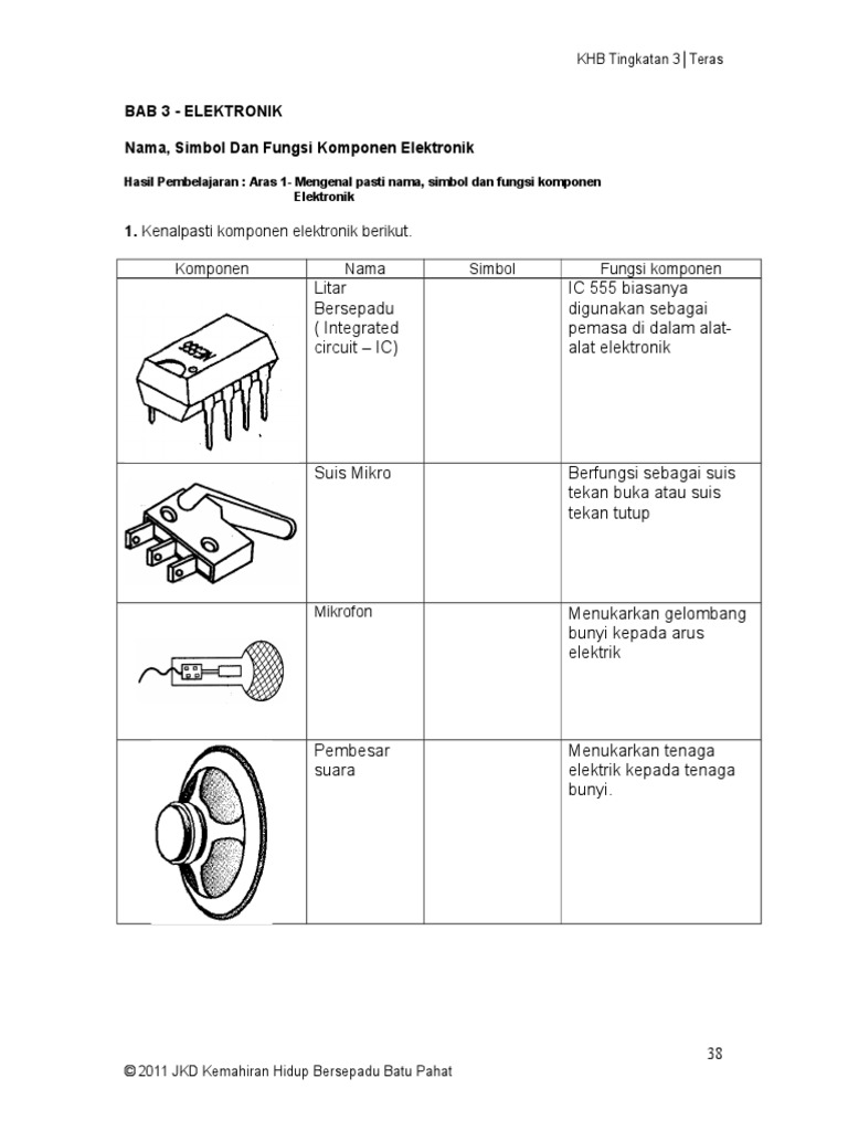 Kemahiran hidup tingkatan tiga bab 2: Kemahiran hidup tingkatan 3/komponen elektronik. Rancangan pelajaran tahunan (elektif kemahiran teknikal) tingkatan 3. Please copy and paste this embed script to where you want to embed. 3.1:'nama,simbol dan fungsi komponen elektrik'.